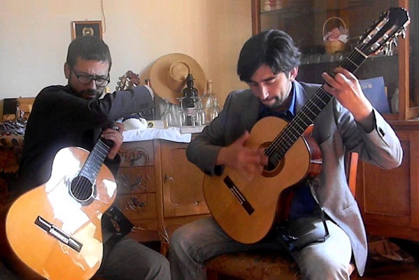 Composición escrita originalmente para dos guitarras, con un ritmo de tonada alegre y que se caracteriza por el virtuosismo de los dos instrumentos. Sus partes son: I. Andante Expresivo, II. Allegro, III. Tranquilo, y IV Allegro, interpretan los guitarristas Carlos Díaz Miranda (Chile) y Gonzalo Victoria (Uruguay).